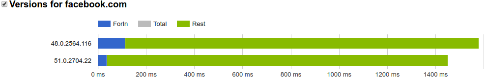Many popular websites rely heavily on for-in and benefit from its optimization. For example, in early 2016 Facebook spent roughly 7% of its total JavaScript time during startup in the implementation of for-in itself. On Wikipedia this number was even higher at around 8%. By improving the performance of certain slow cases, Chrome 51 significantly improved the performance on these two websites: